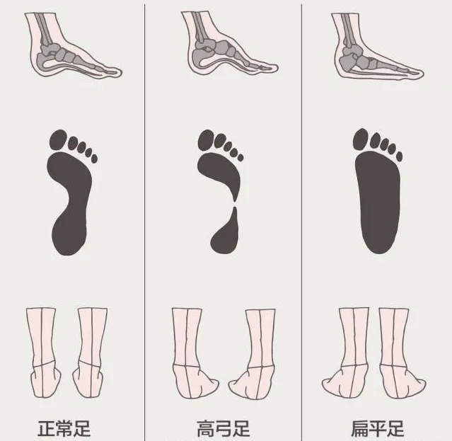扁平足 (Flat feet)為一種足弓過於塌陷的現象。扁平足分為先天型以及後天型,由於足弓塌陷導致接觸地面的接觸面積大,缺乏足弓的缓冲,長時間走路就會疼痛。值得注意的是,通常只有後天型容易有症狀不適